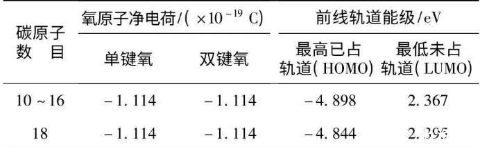 表1不同碳链长度的羧酸氧原子净电荷及轨道能级