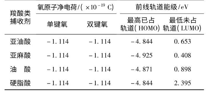 表2不同饱和度的羧酸的氧原子净电荷及轨道能级