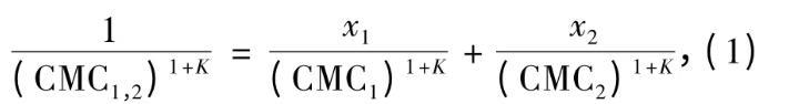 同系列表面活性剂混合后的临界胶团浓度(CMC1,2)可由下式计算: