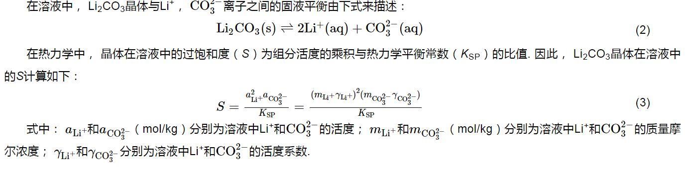 S=a2Li+aCO2−3KSP=(mLi+γLi+)2(mCO2−3γCO2−3)KSP(3)