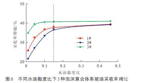 图6不同水油黏度比下3种泡沫复合体系驱油采收率增幅