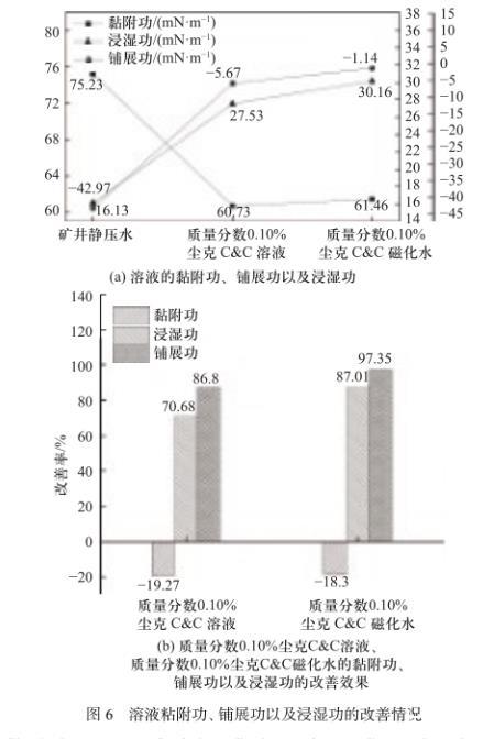 图6溶液粘附功、铺展功以及浸湿功的改善情况