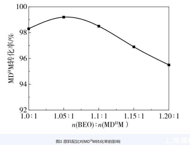 图3原料配比对MDHM转化率的影响