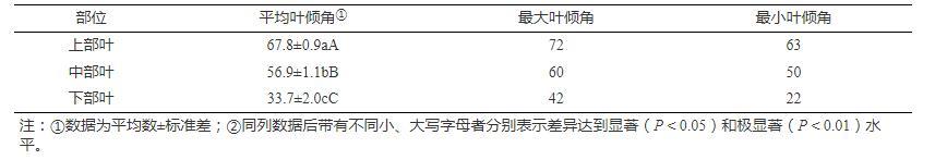 叶倾角对雾滴沉积的作用强于叶面结构,在喷施农药时应优先考虑。表1表明,成熟期烟株上部叶倾角大多集中在60°~70°之间;中部叶倾角居中,集中在50°~60°之间;下部叶倾角较小,集中在20°~40°之间。