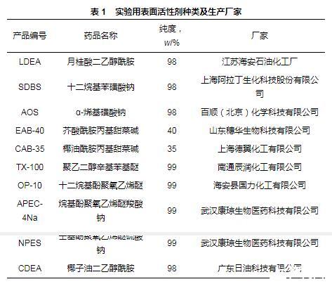 基于阴离子−非离子型表面活性剂复配最佳强化润湿高效驱油体系——实验部分