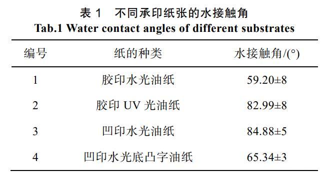 表1不同承印纸张的水接触角