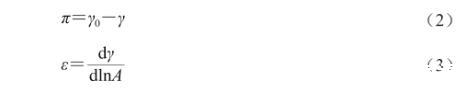 通过CCD相机高速采集油滴轮廓信息,通过Laplace方程计算得到界面张力,通过监测油滴表面积发生变化时界面张力的变化值,计算得到界面弹性模量,按公式(2)、(3)计算: