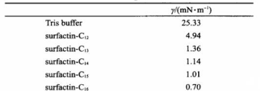 表2不同链长表面活性素溶液和正己烷的界面张力