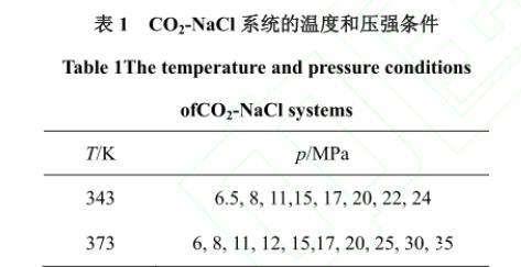 表1 CO2-NaCl系统的温度和压强条件
