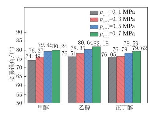 图3环境压力对醇类燃料喷雾锥角的影响