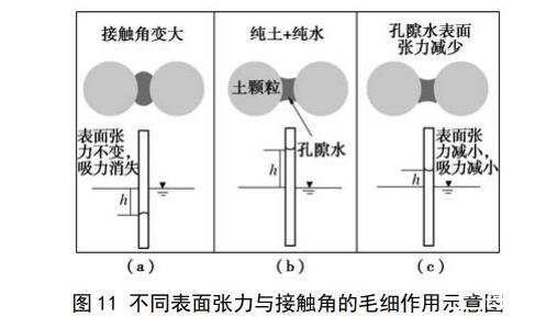 图11不同表面张力与接触角的毛细作用示意图