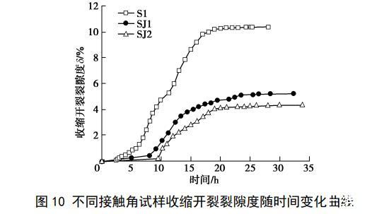 图10不同接触角试样收缩开裂裂隙度随时间变化曲线