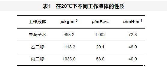 表1在20℃下不同工作液体的性质