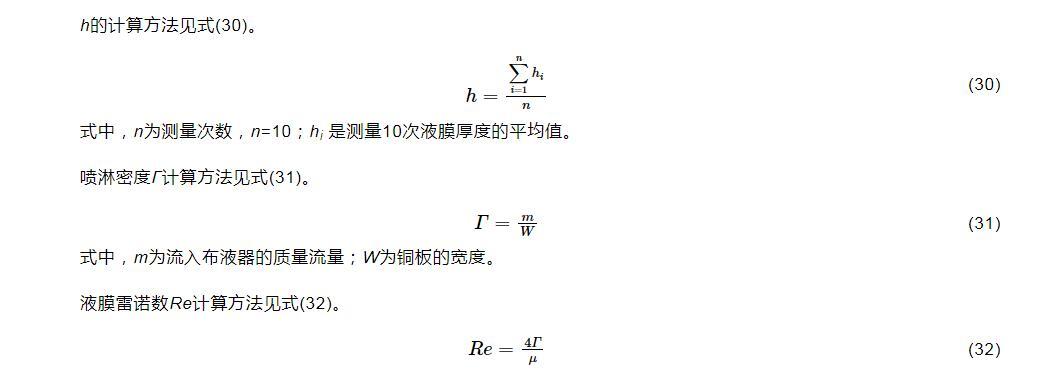 液膜雷诺数Re计算方法见式(32)。