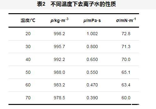 表2不同温度下去离子水的性质