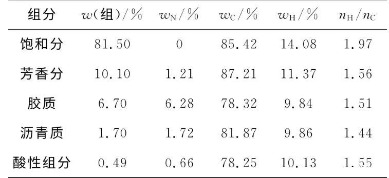 1.2.2原油组分元素分析用ElementarVario EL(Germany)元素分析仪器测定原油中各组分元素的质量分数,结果见表2。