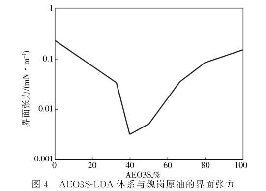 图4 AEO3S-LDA体系与魏岗原油的界面张力