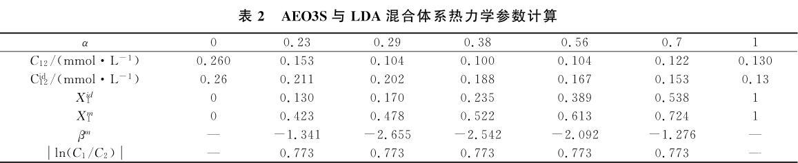 表2 AEO3S与LDA混合体系热力学参数计算