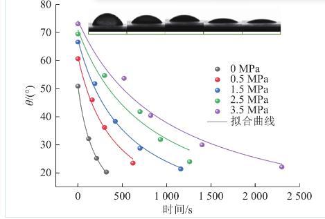 图5不同瓦斯压力下煤与水之间动态接触角