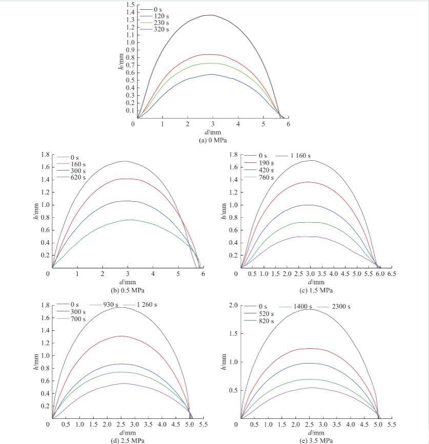 图8不同时间及不同瓦斯压力条件下的水滴轮廓