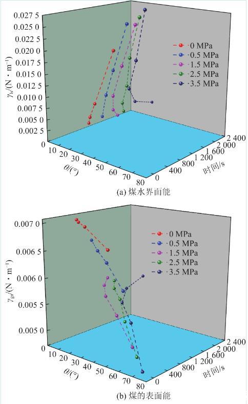 3.2煤水界面能、煤的表面能及黏附功的动态演化规律