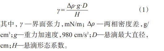 通过悬滴法测定油水间的界面张力。通过相机得到原油悬浮液滴在流体中的图像和体积,由式(1)计算油水界面张力值。测定在不同矿化度(DW、FW、LW)的水中添加0~0.05%纳米ZIF-8颗粒后的油水界面张力值。