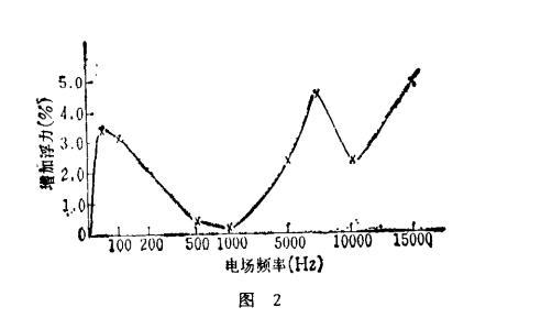浮力和电场频率之间关系曲线见图2。