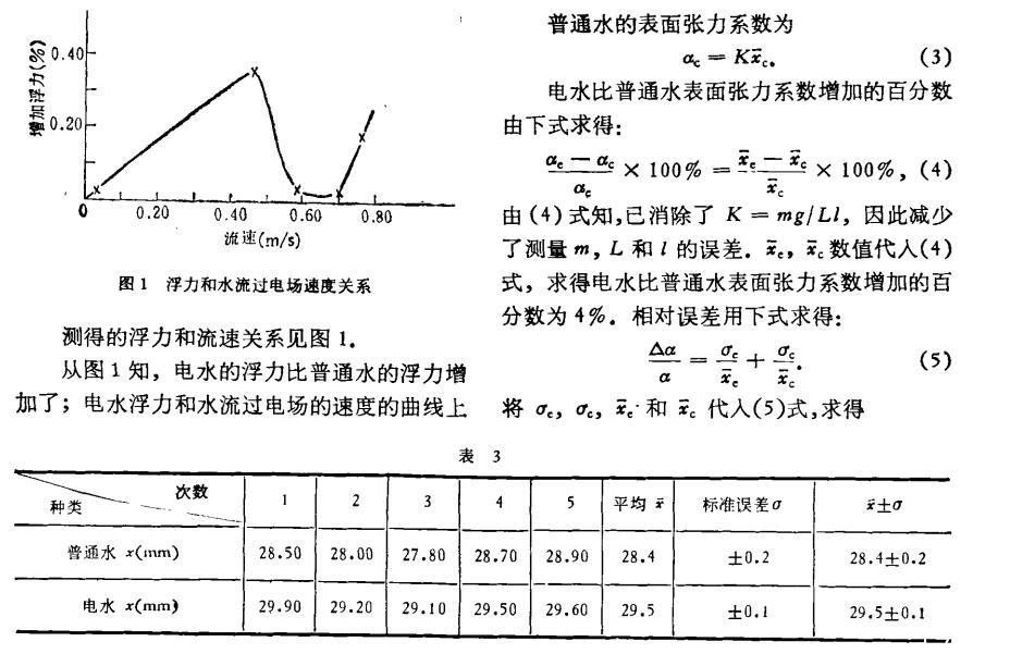 结果,电水比普通水表面张力系数增加的百分数为4%±1%。