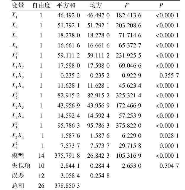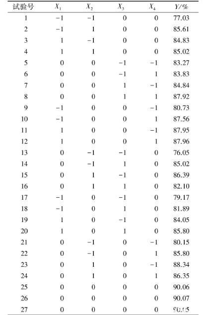 表2响应面试验方案及结果