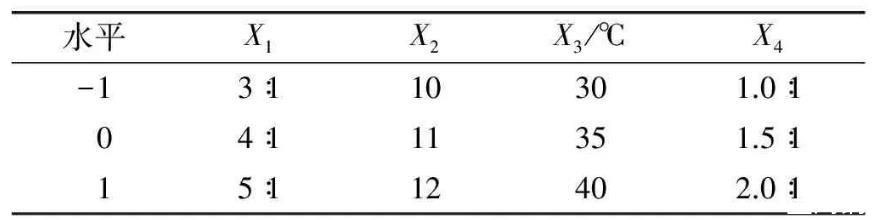 表1响应面试验因素水平