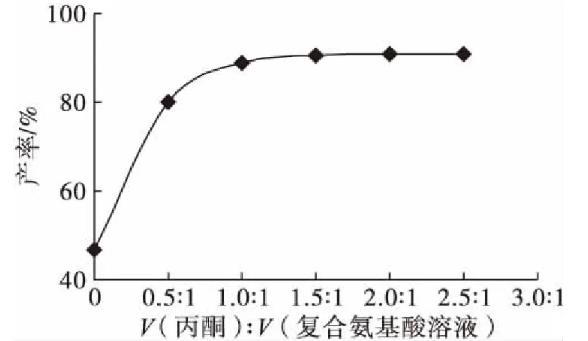 图5丙酮与复合氨基酸溶液体积比对产率的影响