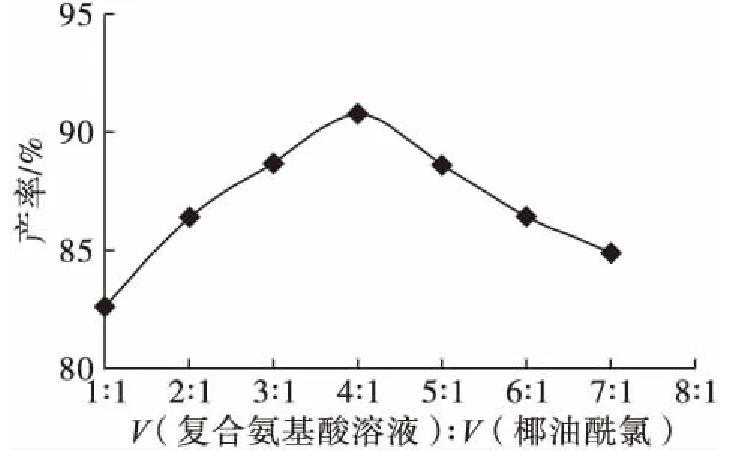 2.1.1复合氨基酸溶液与椰油酰氯体积比对产率的影响