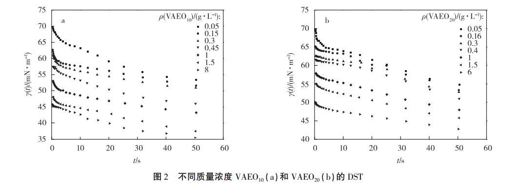 2.2不同质量浓度VAEO的动态表面张力