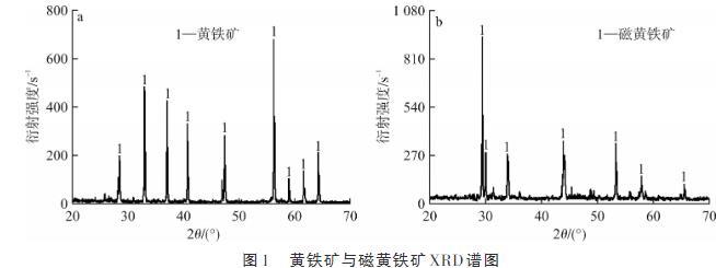 由图1可知:试验所用黄铁矿与磁黄铁矿纯度较高,均达到90%以上,杂峰很少,符合试验要求,可以用作后续试验研究。