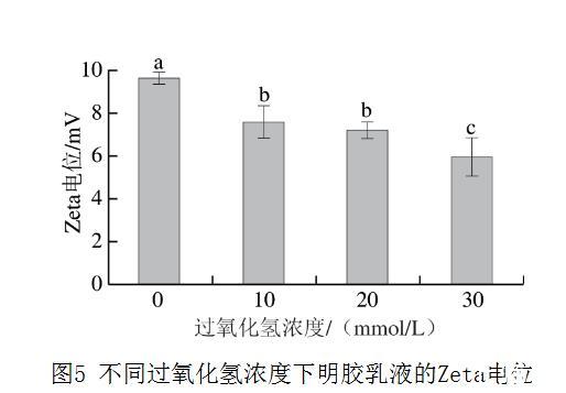 不同浓度的过氧化氢模拟氧化对猪皮明胶乳化性能、界面张力、Zeta电位的影响(三)