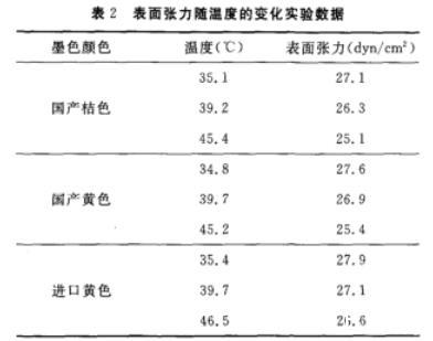 对于主要成分是有机油类的陶瓷墨水,随着温度的升高,内部分子运动加剧,分子之间距离增大,使得分子力减弱,从而导致液体表面使其面积缩小的力减弱,即表现为表面张力减小(见图2)。