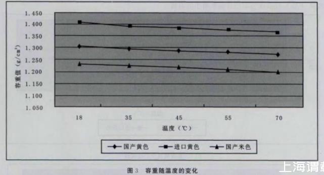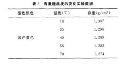 4)按以上步骤分别测量18~70℃的容重(见表3)。