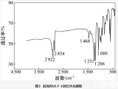 2)利用红外光谱、质谱进行新型起泡剂ULT-1分子结构表征,起泡剂ULT-1分子中具有硫酸酯键、醚键、碳氢键等官能团,与分子结构设计一致。