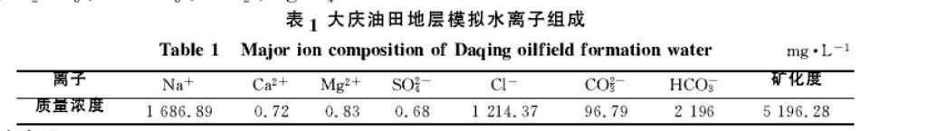 表1大庆油田地层模拟水离子组成
