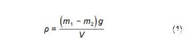 式中,m_1为悬挂于电子天平底部密度探头的质量,g;m_2为密度探头浸入到待测液体内电子天平的数值,g;g为重力加速度,取9.81 m/s^2;V为探头的体积,m^3。