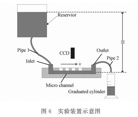 实验装置如图6所示。由于人口、出口和管子尺寸都远大于微管道尺寸,测得的水头高度H视为加在微管道人口的总水头。