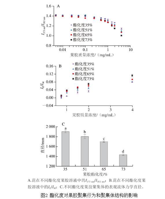 图2酯化度对果胶聚集行为和聚集体结构的影响