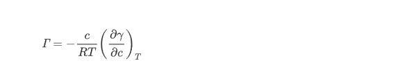 式中,Γ为表面过剩浓度,mol/cm2;c为表面活性剂水溶液浓度,%;R为表面活性剂普氏气体常数,R=8.315×107;T为温度,K;γ为界面张力,mN/m;