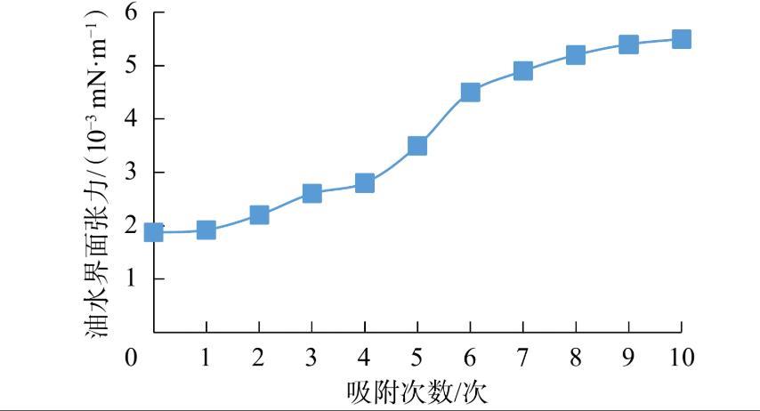 图4吸附次数对油水界面张力的影响