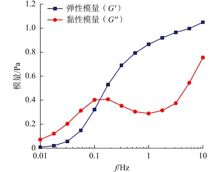 图8小段塞的黏弹性随振动频率的变化情况