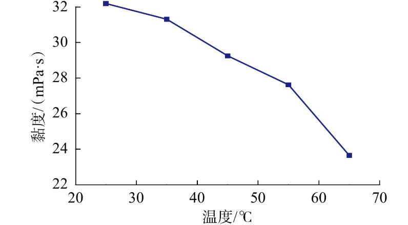 图9质量分数为2.7%的ACS-2高黏表面活性剂体系溶液黏度随温度的变化