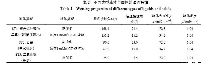 表2不同类型液体与固体的湿润特性