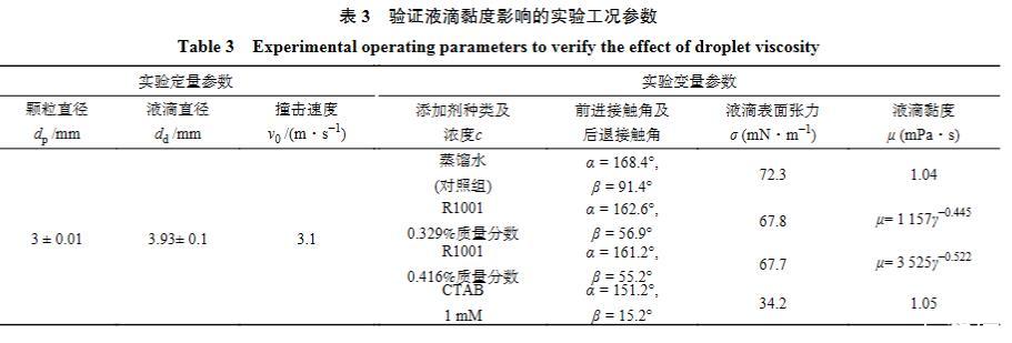 表3验证液滴黏度影响的实验工况参数