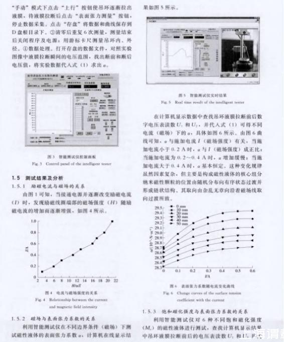 1. 变化磁场条件下测试磁性液体的表面张力系数