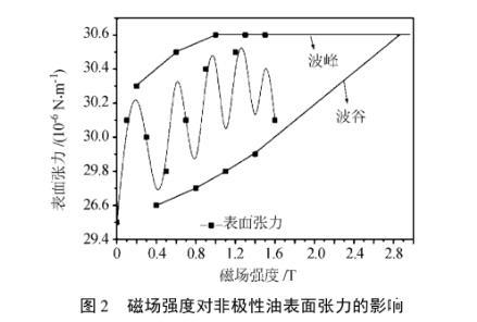 图2磁场强度对非极性油表面张力的影响
